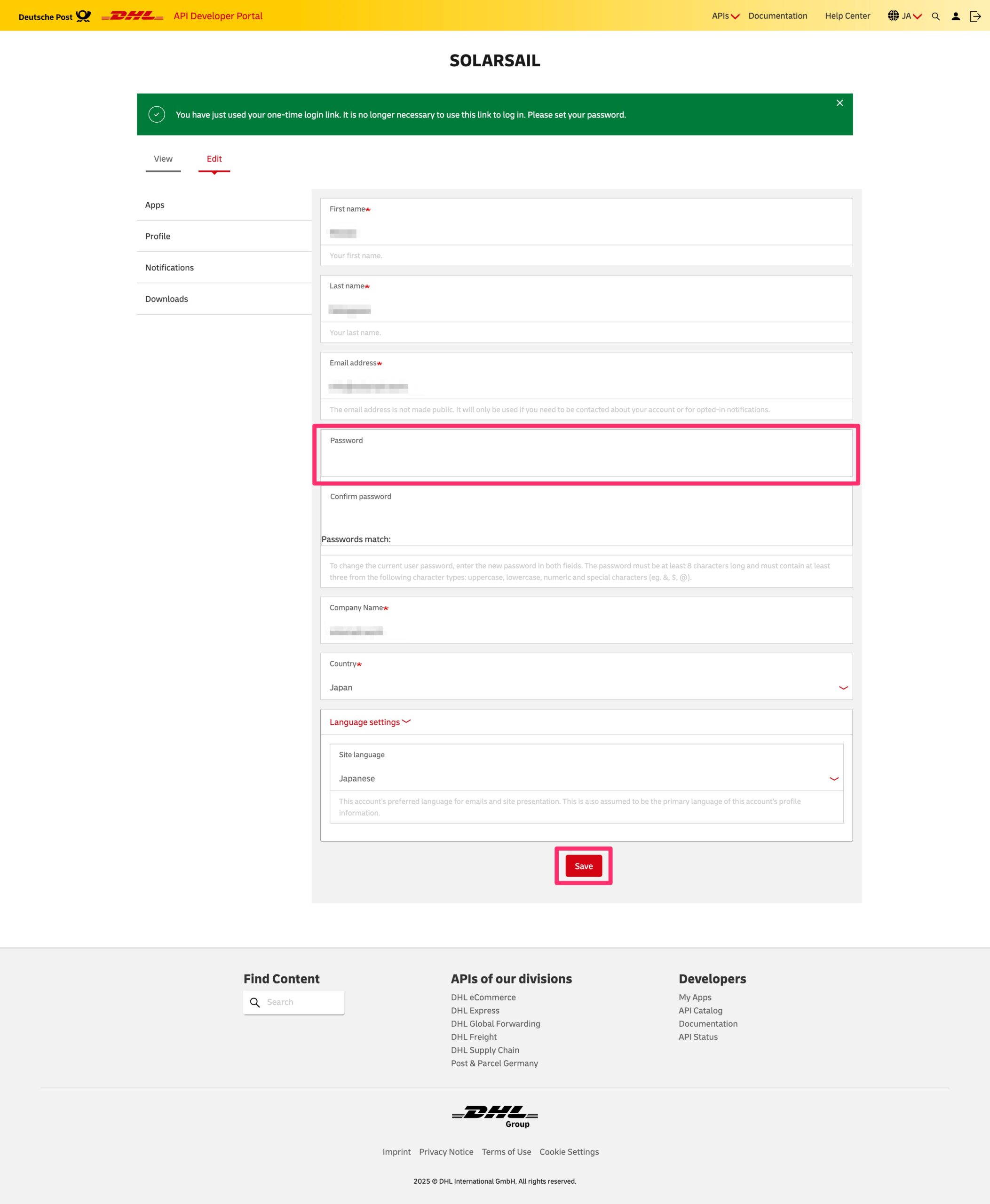以上で、WSとDHLアカウントの統合に必要となるDHLのAPI KeyとAPI Secretの取得が完了です。