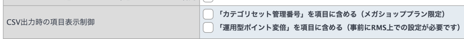 楽天市場のモール設定に、「カテゴリセット管理番号」「運用型ポイント変倍」欄が追加されました。