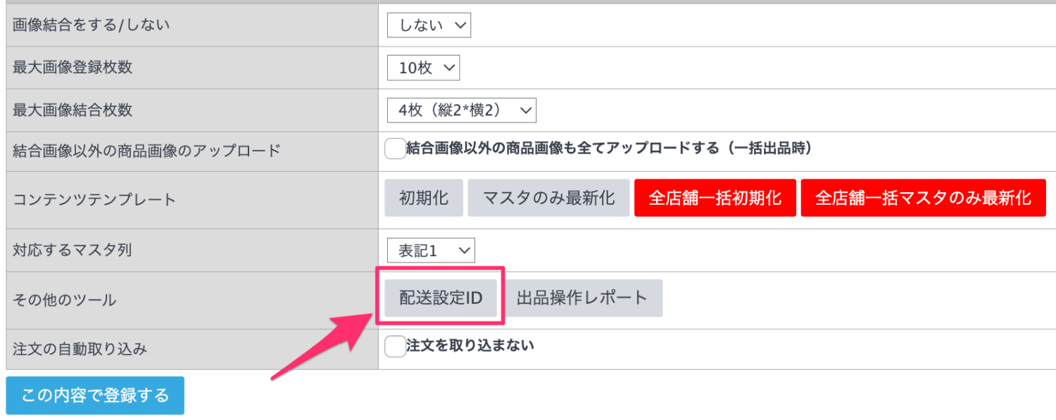 モール設定の最下部「その他のツール」の「配送設定ID」をクリックします