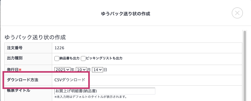 WSからゆうパックの送り状を発行する際、「ダウンロード方法」で選択が可能だったPDFを削除いたしました。