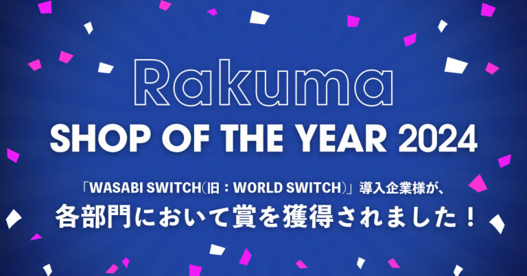 弊社が提供する「WASABI SWITCH」導入企業様が、楽天ラクマ SHOP OF THE YEAR 2024各部門において賞を獲得されました。 受賞された皆様、この度は誠におめでとうございます。喜びの声とともに、ご紹 … 続きを読む 「WASABI SWITCH」導入企業様が楽天ラクマSHOP OF THE YEAR2024 各部門で各賞を受賞されました!
