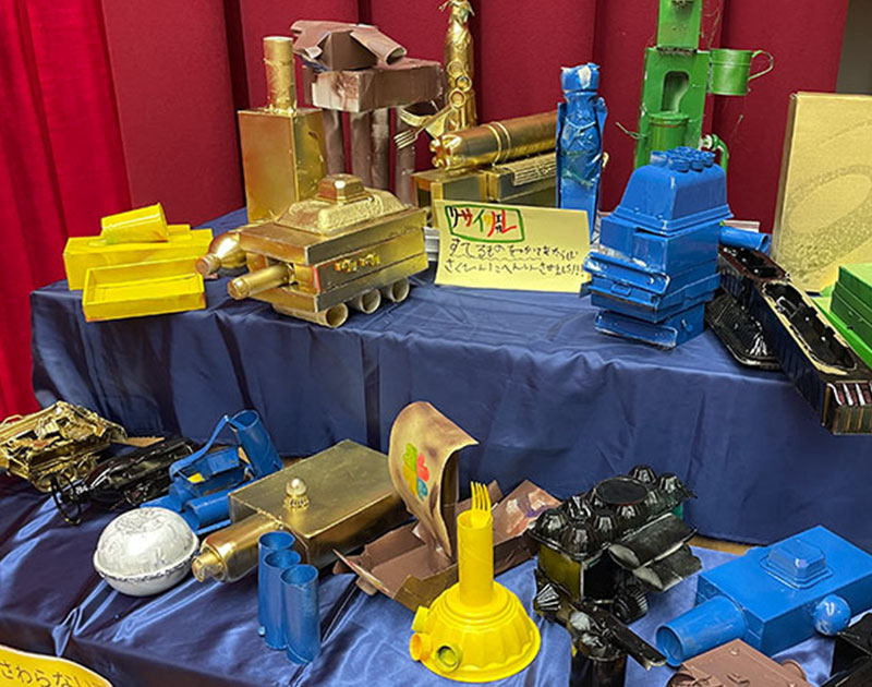 さらに、各ブースでは、リサイクル用品を用いた作品展示やクラフトワークショップも実施。ペットボトルや空き箱が、子どもたちの手によって見事なアートやアクセサリーへと生まれ変わり、その姿は、素材に新しい命を吹き込む小さなクリエイターそのものでした。