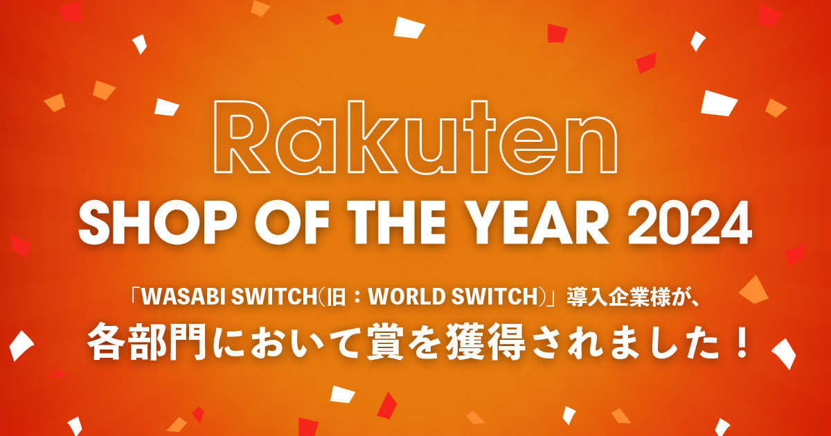 弊社が提供する「WASABI SWITCH」導入企業様が、Rakuten SHOP OF THE YEAR 2024各部門において賞を獲得されました。 受賞された皆様、この度は誠におめでとうございます。喜びの声とともに、ご紹介させて頂きます。 Rakuten SHOP OF THE YEAR 2024とは 「楽天ショップ・オブ・ザ・イヤー」は、「楽天市場」に出店する店……